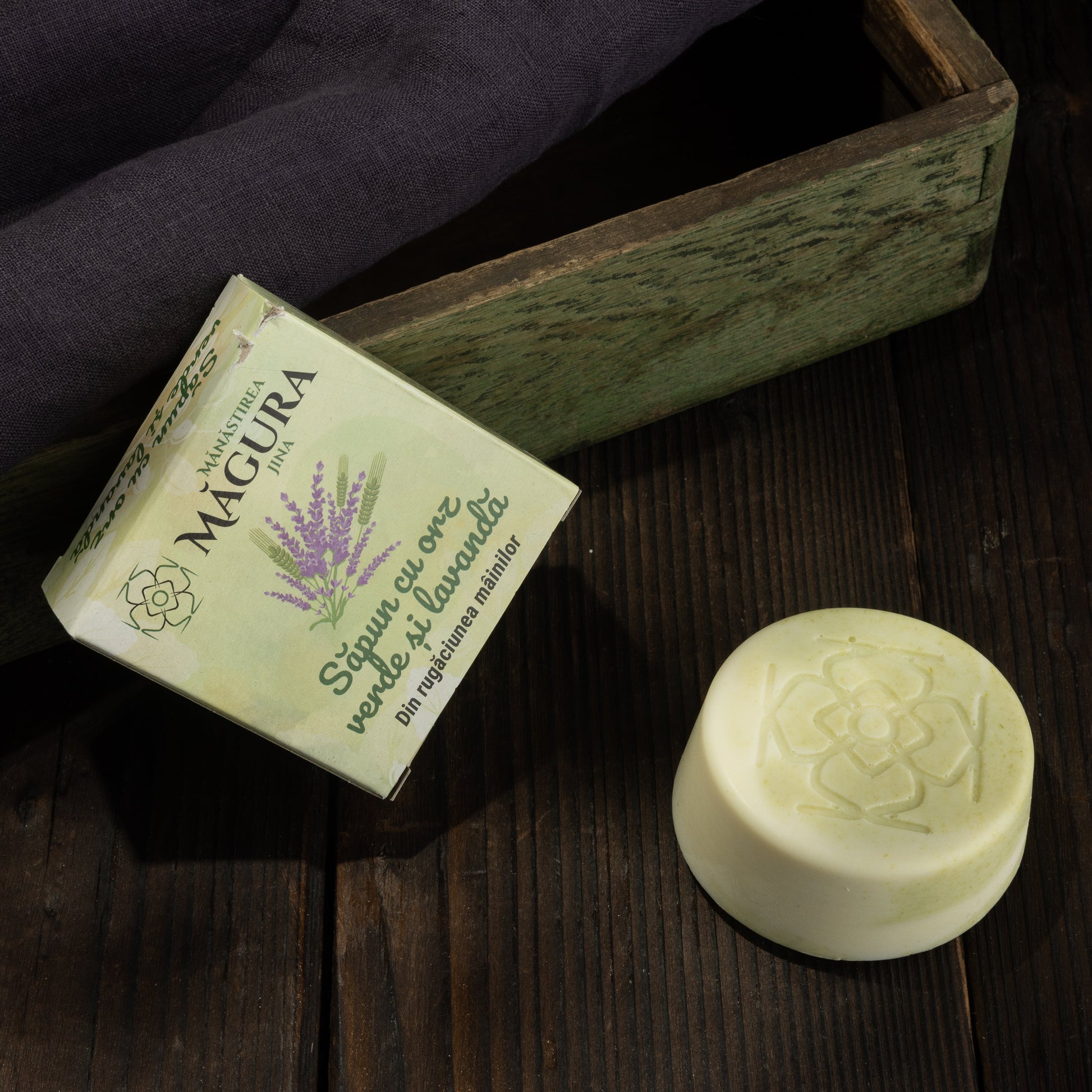 Este un săpun născut la Măgura, cu orz verde din grădină (uscat și făcut pudră), veteranul săpunurilor noastre care emană simplitate și siguranță.